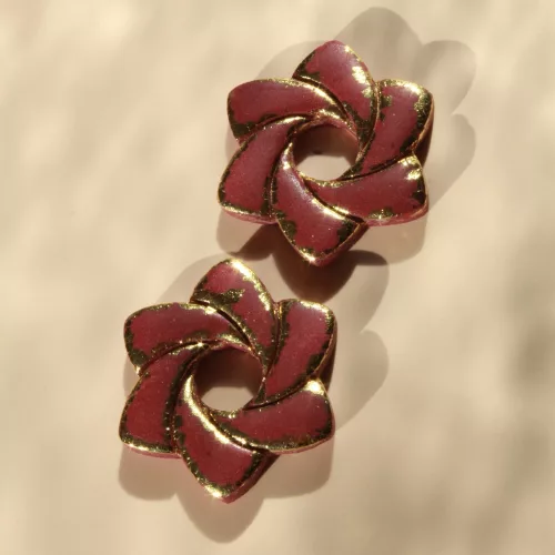 Créoles interchangeable fleurs prunes et dorées