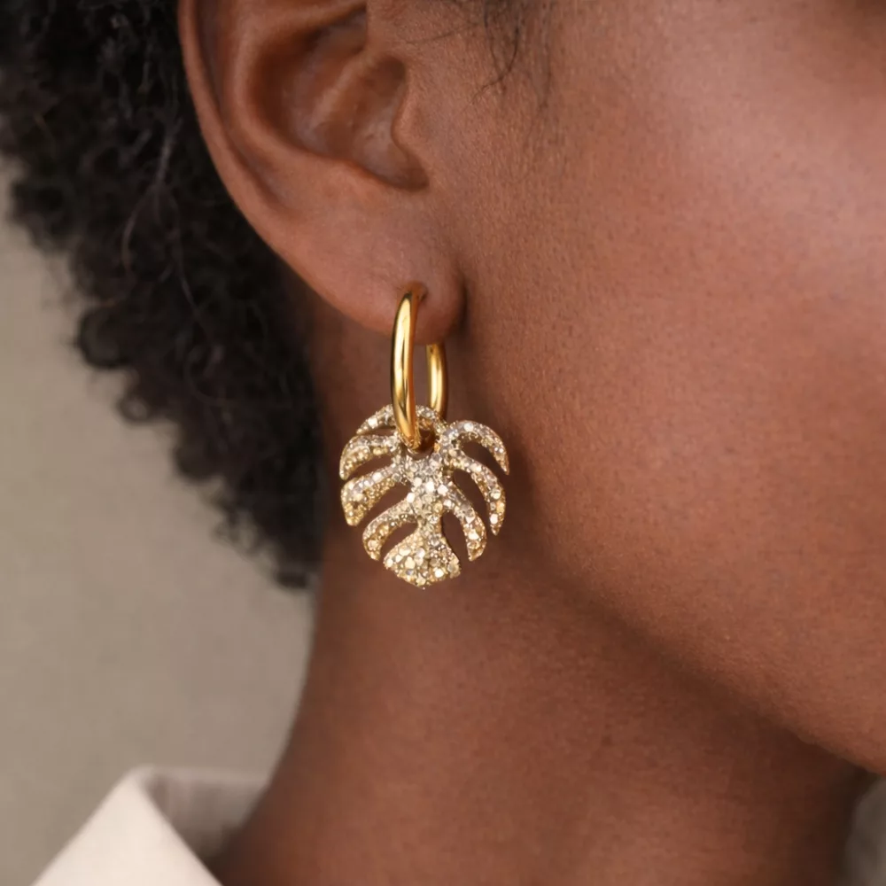 Craque pour cette paire de créoles interchangeables monstera, un modèle élégant inspiré des feuilles tropicales.